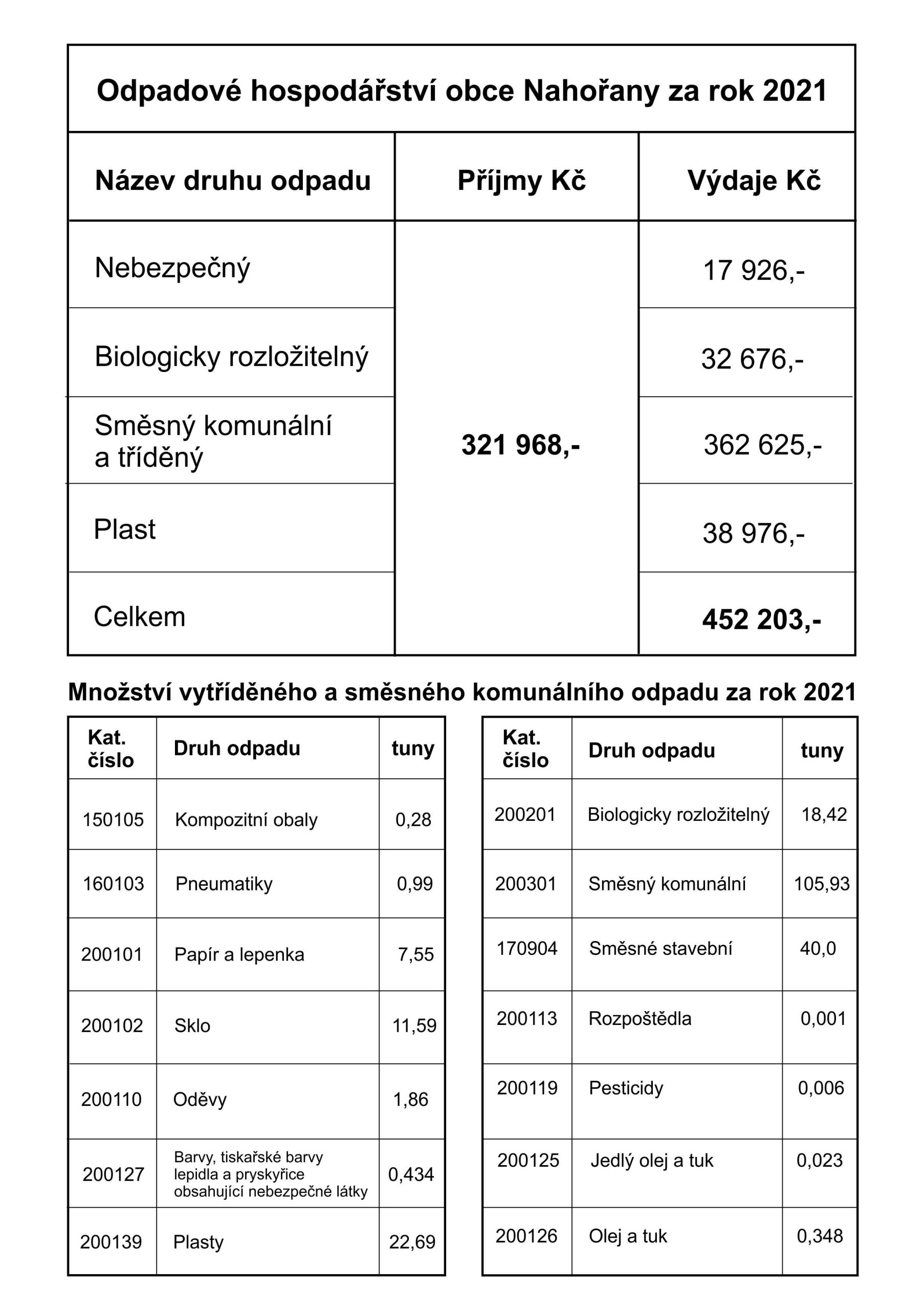 Informace o obecním nakládání s odpady dle par. 60 odst. 4 zák. 541/2020 Sb. o odpadech